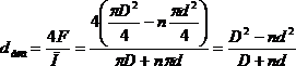 где F—площадь сечения потока, м2; П—смоченный периметр, м; D—внутренний диаметр  аппарата или внутренний диаметр наружной трубы; dнаружнsй диаметр трубок, м; п—число трубок.