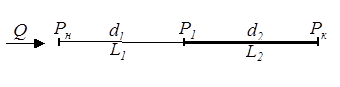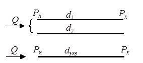 Предварительно, разумеется, должны быть определены коэффициенты гидравлического сопротивления . Это не вызовет затруднений, поскольку  и  известны. Если отборы (подкачки) невелики, то целесообразным оказывается трубопровод постоянного диаметра.