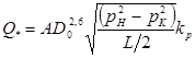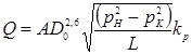 Пропускная способность -го трубопровода, входящего в эту систему, qi выражается такими же формулами. Следует лишь ,  или  приписать индекс . Учитывая, что , где  число параллельных трубопроводов, получаем