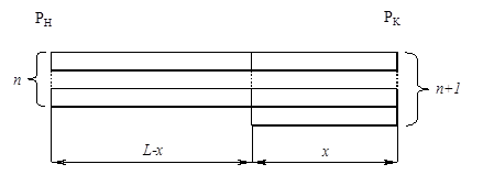 Начальная точка лупинга соединена со всеми п трубопроводами (рис. 5.8). По-прежнему будем считать, что рассматриваемый газопровод состоит из двух по­следовательно соединенных блоков: L–х  и  х.