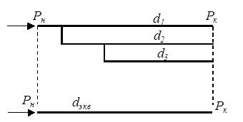 Эквивалентным газопроводом называют однониточный постоянного диаметра, равноценный по пропускной способности рассчитываемому.