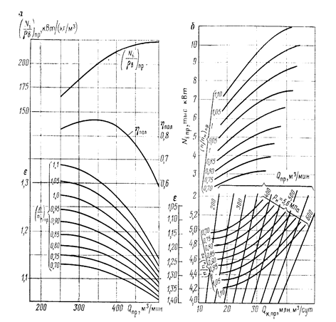 Такие характеристики, называемые приведенными, были разработаны во ВНИИгазе. В итоге широко поставленных натурных испытаний центробежных нагнетателей ВНИИгазом изданы специальные альбомы приведенных характеристик.
