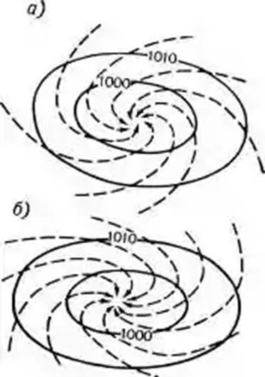 которых перемещения частиц воздуха рассматривались вдоль меридиана в вертикальной плоскости в виде различных замкнутых или разомкнутых колец. Одна схем приведена на рис. 22.1.