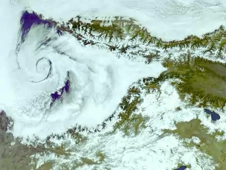 Противоположность Zn в системе ОЦА - Az с отличным механизмом возникновения. Различают два основных вида Zn - внетропические и тропические. В данном случае на снимке изображен черноморский Zn, который относится к южным Zn внетропического вида, так как образовался на южной границе умеренных широт и смещается на СВ и В, занимая постепенно предгорья и равнины между Кавказским хребтом и Армянским нагорьем. Южные Zn имеют ярко выраженную температурную асимметрию: зимой с ними связаны снегопады и метели, летом - обильные дожди, ливни, грозы. Кроме того, южные циклоны отличаются колоссальными запасами энергии, поэтому именно с ними связаны наиболее сильные осадки, ветры, грозы, шквалы и другие явления погоды, как на суше, так и на море.