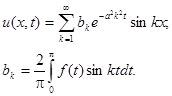В случае рассмотрения уравнения теплопроводности в стержне искомая функция u(x, t) должна удовлетворять записанному выше дифференциальному уравнению, начальному условию