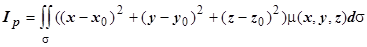 Момент инерции относительно точки P(x0,y0,z0) равен