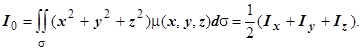 =rL(x,y,z) - расстояние от точки (x,y,z), лежащей на поверхности s, до прямой L. В частности, моменты инерции относительно координатных осей OX, OY, OZ равны