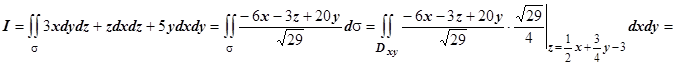 В заключение напомню, что вычисление поверхностного интеграла второго рода всегда можно свести к вычислению поверхностного интеграла первого рода. Так, в последнем примере подынтегральное выражение равно