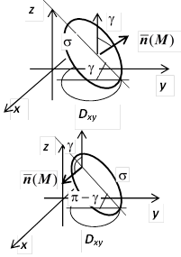 на плоскость Oхz, знак "+" берётся для "правой" стороны поверхности (где