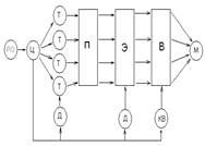 2) Системный: Предлагает последовательный переход от общего к частному. В основе моделирования лежит общая цель. На основе исходных данных и цели Ц формулируются требования Т к модели.На базе требований формируется подсистемы П и элементы Э будущей модели,кот на основе критерия выбора формируют состав модели М.