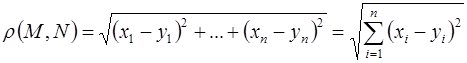 Расстояние между M( x1, x2, …, xn ) и N( y1, y2, …, yn )