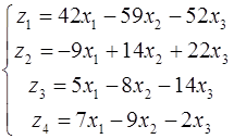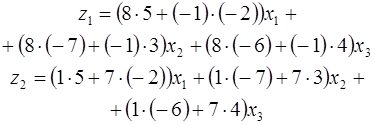 - внутренние затраты, которые зависят от валовой продукции линейно: z1=a11x1+a12x2+…+a1nxn и т.д.