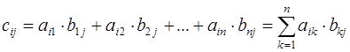 Правило: «строка 1-й матрицы на столбец 2-й матрицы по формуле скалярного произведения». Число столбцов 1-й матрицы должно быть равно числу строк 2-й.