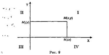 если точка М лежит в I квадранте, то х > 0, у > 0;