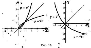 - является обратной для функции х = у2, х < 0, графиком которой является левая половина параболы (см. рис. 15).