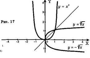 На рис. 17 приведены графики степенной функции у = х4 и соответствующих обратных функций.