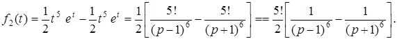 1. Грубой ошибкой будет представление изображения заданных функций в виде произведения изображений, соответствующих каждому из сомножителей, так как умножению оригиналов в пространстве оригиналов соответствует другая операция в пространстве изображений [4,5].