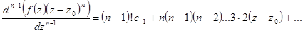 (второе, третье, четвертое и т.д.) обратятся в нуль. Отсюда имеем формулу для вычета функции в полюсе n – ого порядка:
