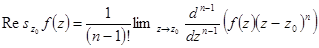 В том случае, когда z0 – полюс n-го порядка, то разложение в ряд Лорана в окрестности этой точки не содержит степеней