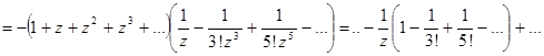 - существенно особая точка, вычет в ней вычисляется единственным способом – непосредственным разложением функции в ряд Лорана и вычислением коэффициента при –1 степени.