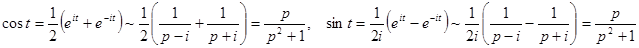 Пример. Найдем изображения по Лапласу тригонометрических и гиперболических синуса и косинуса.