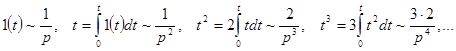 называется образом или изображением (по Лапласу). Принято обозначать соответствие оригинала и изображения