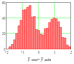 рыба по представленной в приложении к этой главе методике, а также построить на Рис.10.2.4 их гистограмму. Эта гистограмма представляет распределение с двумя вершинами непохожее на симметричное нормальное распределение.