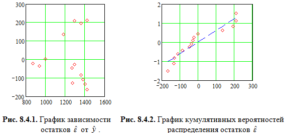 является вектором оценки вектора e случайных ошибок модели у=Xb+e и может использоваться для проверки правильности модели и принятых при её построении допущений. Получаемые по формуле (8.4.1) остатки