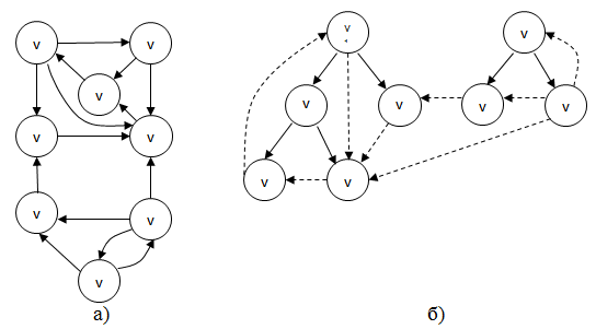 Рис. 18. Ориентированный граф (а) и ориентированный глубинный остовный лес для него (б)