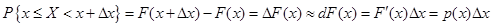 Непрерывной называют случайную величину X, функцию распределения которой F(x) можно представить в виде: . Функцию p(x) называют плотностью распределения (вероятностей) случайной величины X.