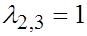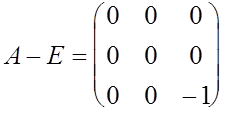 где - произвольные вещественные константы. Геометрически, как легко понять, это множество всех векторов, лежащих в плоскости . Обратим внимание на то, что размерность собственного подпространства, принадлежащего собственному числу 1, равна двум и совпадает с кратностью данного характеристического корня как корня многочлена. Позже мы увидим, что такое совпадение не случайно.