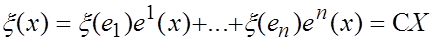 представляя собой, очевидно, строку значений функционала  на базисных векторах пространства  (ее можно рассматривать как обычную в такой ситуации векторную матрицу-строку, состоящую из векторов размерности 1, т.е., просто чисел).