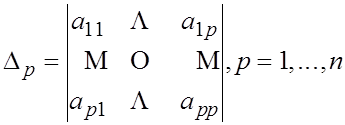 были положительны. Можно доказать, что это требование равносильно требованию неотрицательности любого определителя вида: