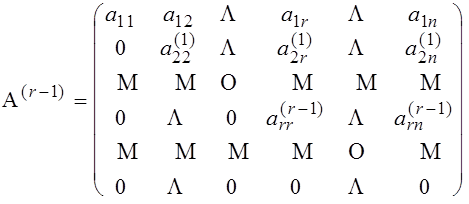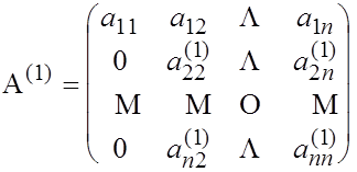 Выражение (2) очень похоже на выражение для пересчета матрицы на первом шаге процедуры Гаусса решения системы линейных уравнений (первый семестр!). Этот шаг, напомним, состоит в вычитании из каждой