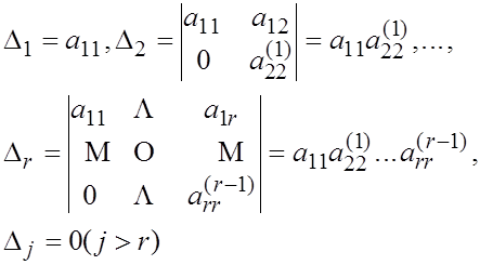 Поскольку элементарное преобразование, выполняемое на каждом шаге метода Гаусса, не меняет ни ранга, ни определителя матрицы (первый семестр!), мы можем написать: