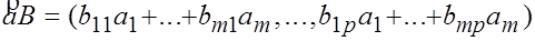 Таким образом, по определению, результатом умножения векторной матрицы строки справа на числовую матрицу будет новая векторная матрица-строка, число компонент которой равно числу столбцов матрицы