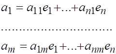 С использованием векторных матриц-строк удобно записывать разложение произвольных систем векторов по данному базису.