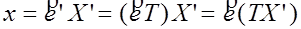 Вернемся к задаче преобразования базисов. Запишем разложение нового («штрихованного») базиса в старом (не «штрихованном»):