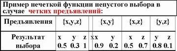 Нечеткая функция выбора производит отображение предъявлений в результаты выбора, которые представляются нечеткими множествами.