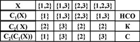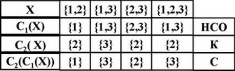 Если исходные механизмы выбора М1 и М2 обладают свойствами принципа Кондорсе, то объединение этих механизмов (ОМ), как правило, не обладает этими свойствами.