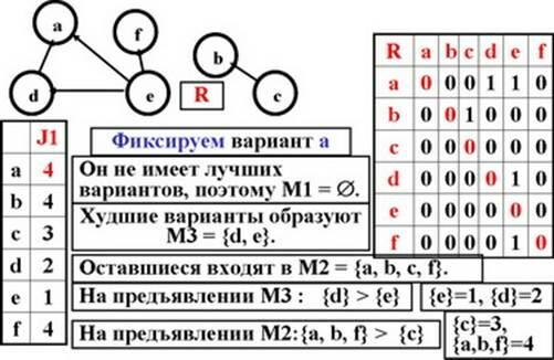 4. Пронумеруем все эти подмножества в направлении возрастания предпочтительности. Значение критерия для любого варианта равно номеру подмножества, в которое он входит.