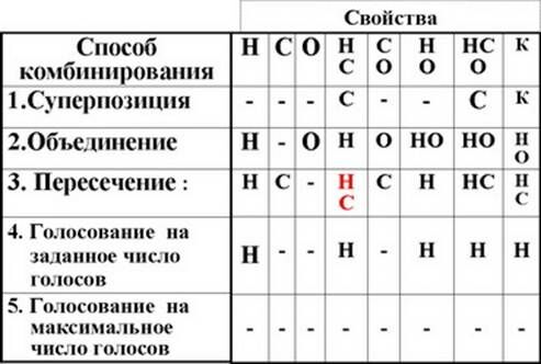 Свойства Н, С, О многокритериальных функций выбора