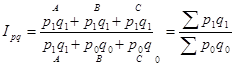 pq – количество, объем в стоимостном выражении (объем товарооборота)