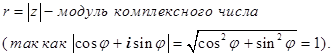 Т.е. модуль произведения комплексных чисел равен произведению их модулей, а аргумент – сумме аргументов. Отсюда следует формула Муавра: