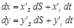 Эти три равные величины обозначим dS. Разделив эти три равенства на dS, получим 3 дифференциальных уравнения: