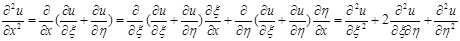 Введем новые переменные ξ=x-y, η=x+y, и вычислим в этих переменных производные 1-го и 2-го порядков: