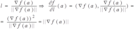 Следовательно, если вектор направления коллинеарен вектору градиента, то производная по направлению имеет максимальное значение, равное норме градиента: