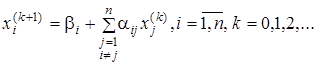 Рассмотрим решение этой системы методом простых итераций. Для применения этого метода необходимо предварительно преобразовать систему (12) к виду
