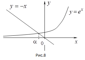 (Рис.8). Абсцисса точки пересечения этих графиков является приближенным значением корня