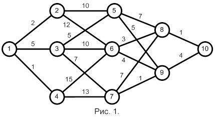 Цель – найти путь из п. 1 в п. 10, для которого общая стоимость проезда является минимальной. Сложность решения подобных задач сострит в том, что они по своей природе являются комбинаторными: необходимо перебрать все возможные маршруты и подсчитать общую стоимость проезда по каждому из них.
